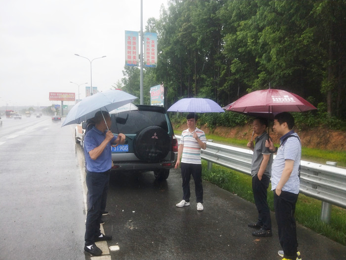 6月16日上午,市公路管理處黨委委員、總工程師吳煥仍,橋隧科科長李衛(wèi)華一行冒雨到綿江路檢查汛期安全工作,路橋公司副總經理蘭小松、養(yǎng)護事業(yè)部相關人員陪同檢查。