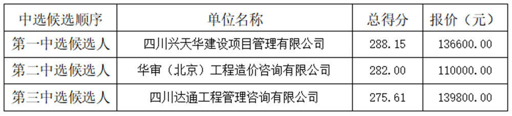 四川久安工程管理有限公司(以下簡稱“代理機構(gòu)”)組織比選的“增加城市科技元素(一期)項目結(jié)算審計服務(wù)”項目(項目編號:四川久安比選[2021]4號),于2021年09月14日10時30分(北京時間)由比選小組評審,招標人代表、現(xiàn)場監(jiān)督人員參加。本次評比小組依法評比結(jié)果及授標建議如下: ?