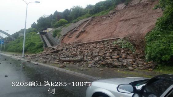 受強降雨影響,2017年7月5日上午,路橋公司管養(yǎng)的綿江路、綿三路、綿鹽路、綿梓路及綿中路多處地段發(fā)生大面積垮塌和積水等險情。