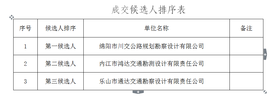 綿陽交發(fā)恒通建設(shè)工程有限責(zé)任公司于2015年8月3日進(jìn)行了?國道108線破廟子段路面病害處置工程設(shè)計?(項目編號:JFHT-2015-01)競爭性談判,經(jīng)項目談判小組按競爭性談判文件既定程序進(jìn)行競談,現(xiàn)將成交候選人公示如下: